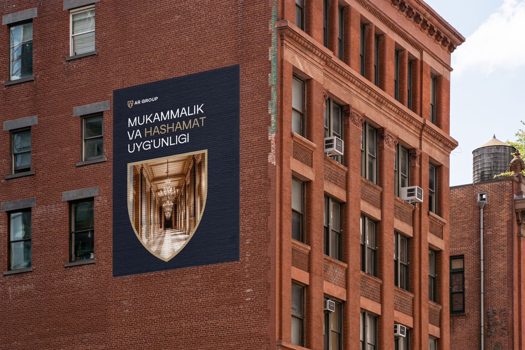 AR Group 30 yildan ortiq vaqt mobaynida O‘zbekiston, MDH, Chexiya, Dubay va Turkiyada loyihalaryaratib keladi. Ularning mijozlari maqom, barqarorlik va har bir jihatga e’tibor beradigan odamlardir. Biz tushundikki, vizual uslub ularning loyihalari kabi mustahkam, nafis va o‘ziga xos bo‘lishi kerak.
