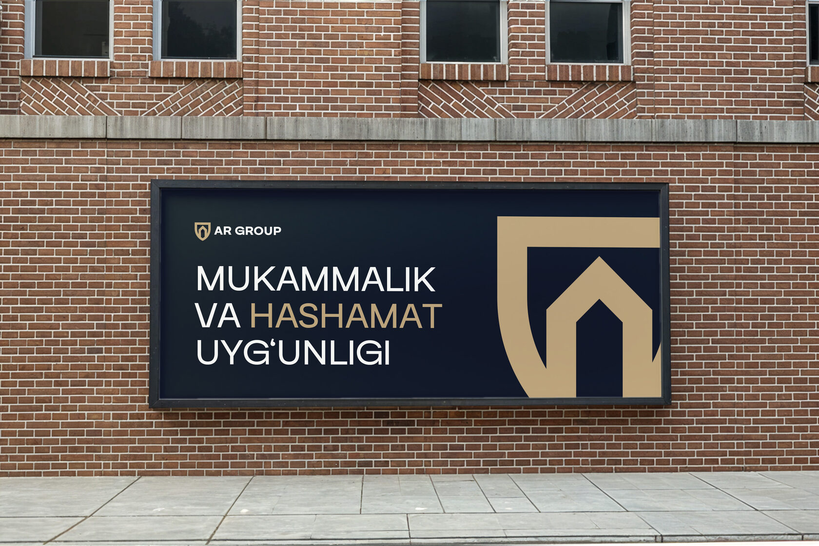 AR Group более 30 лет создает пространства в Узбекистане, СНГ, Чехии, Дубае и Турции. Их клиенты это люди, для которых важны статус, долговечность и внимание к деталям. Мы поняли, что визуальный стиль должен быть таким же, как их проекты, прочным, элегантным и уникальным.