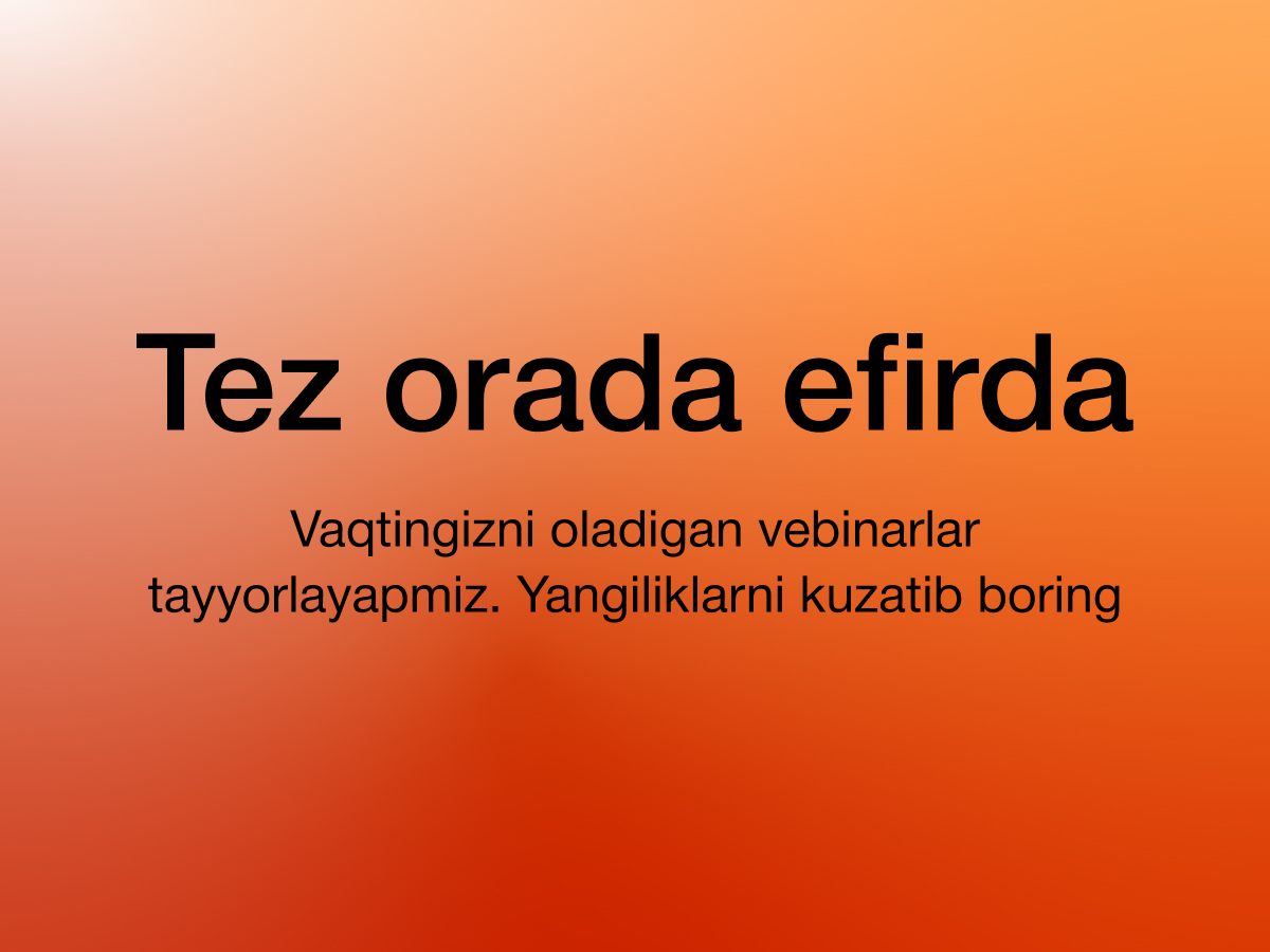 Vaqtingizni oladigan vebinarlar tayyorlayapmiz. Yangiliklarni kuzatib boring